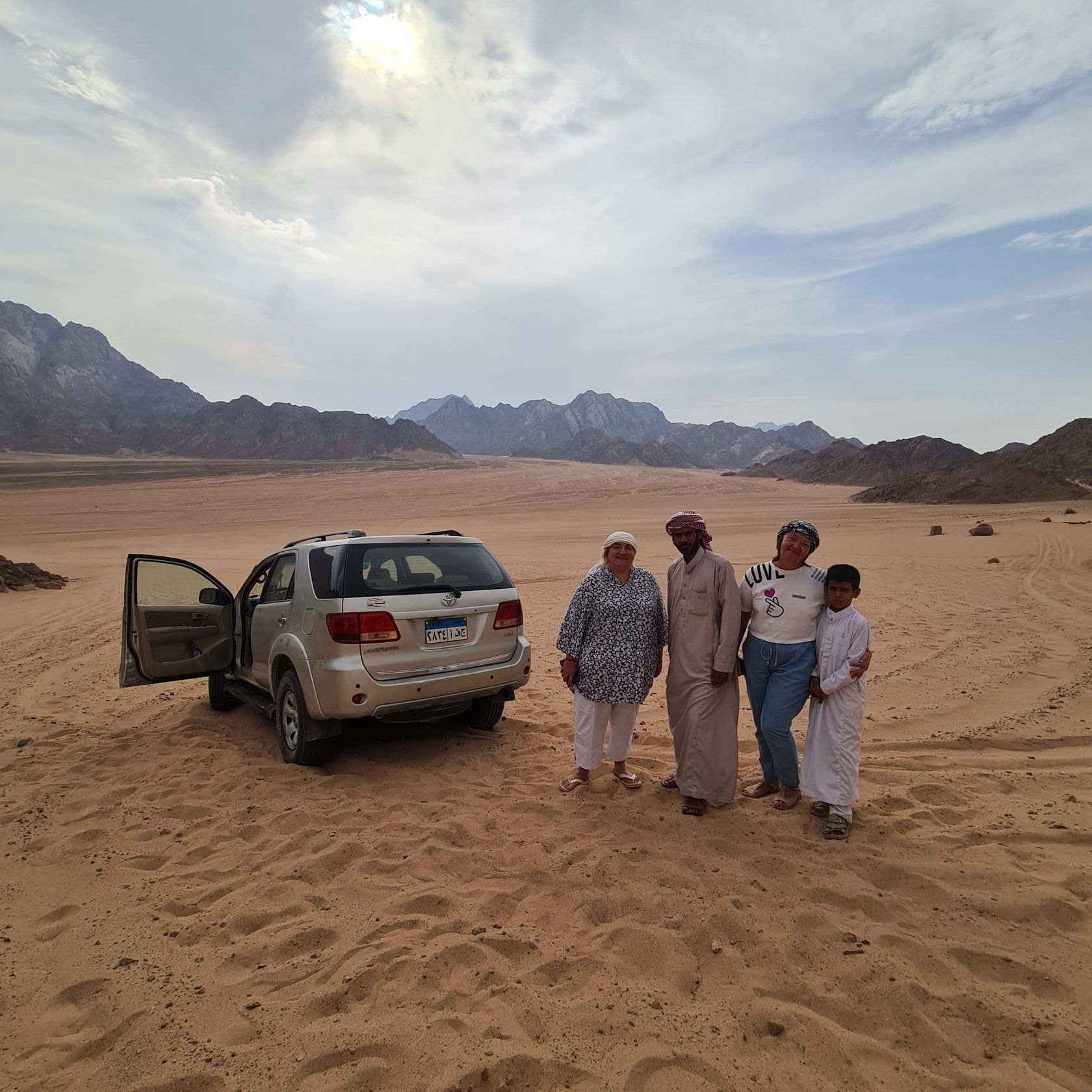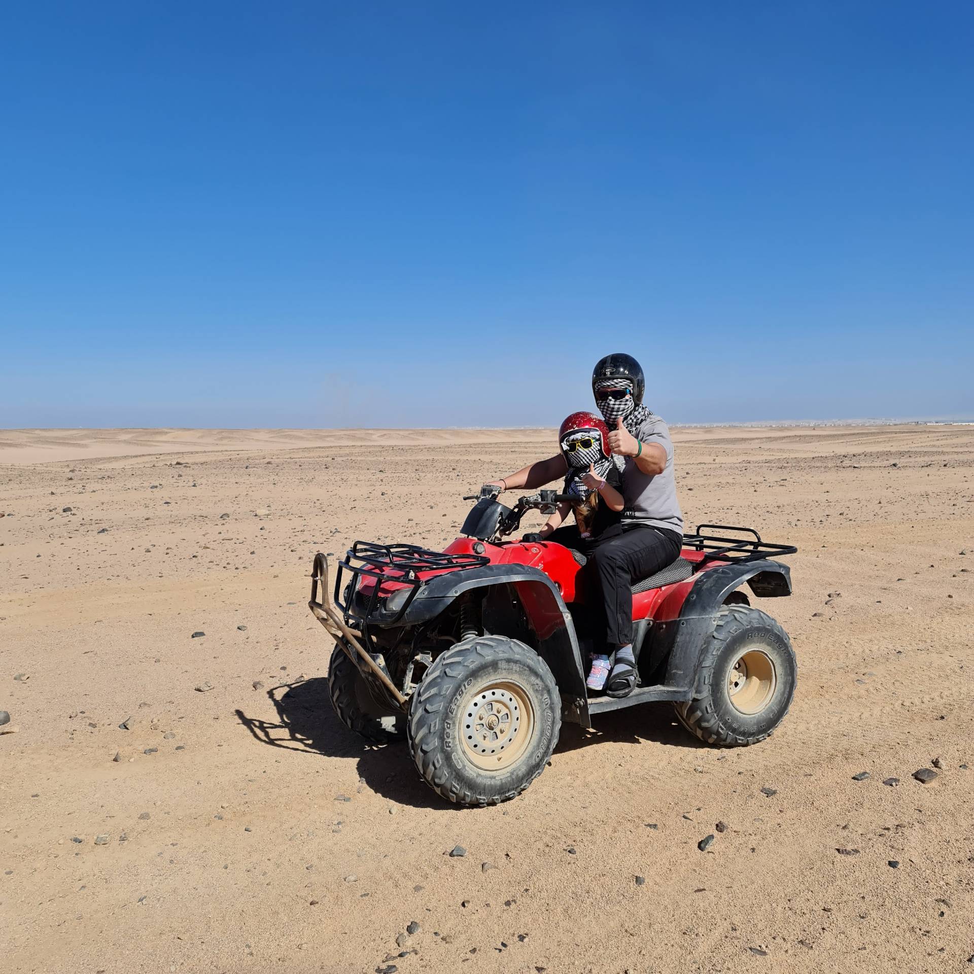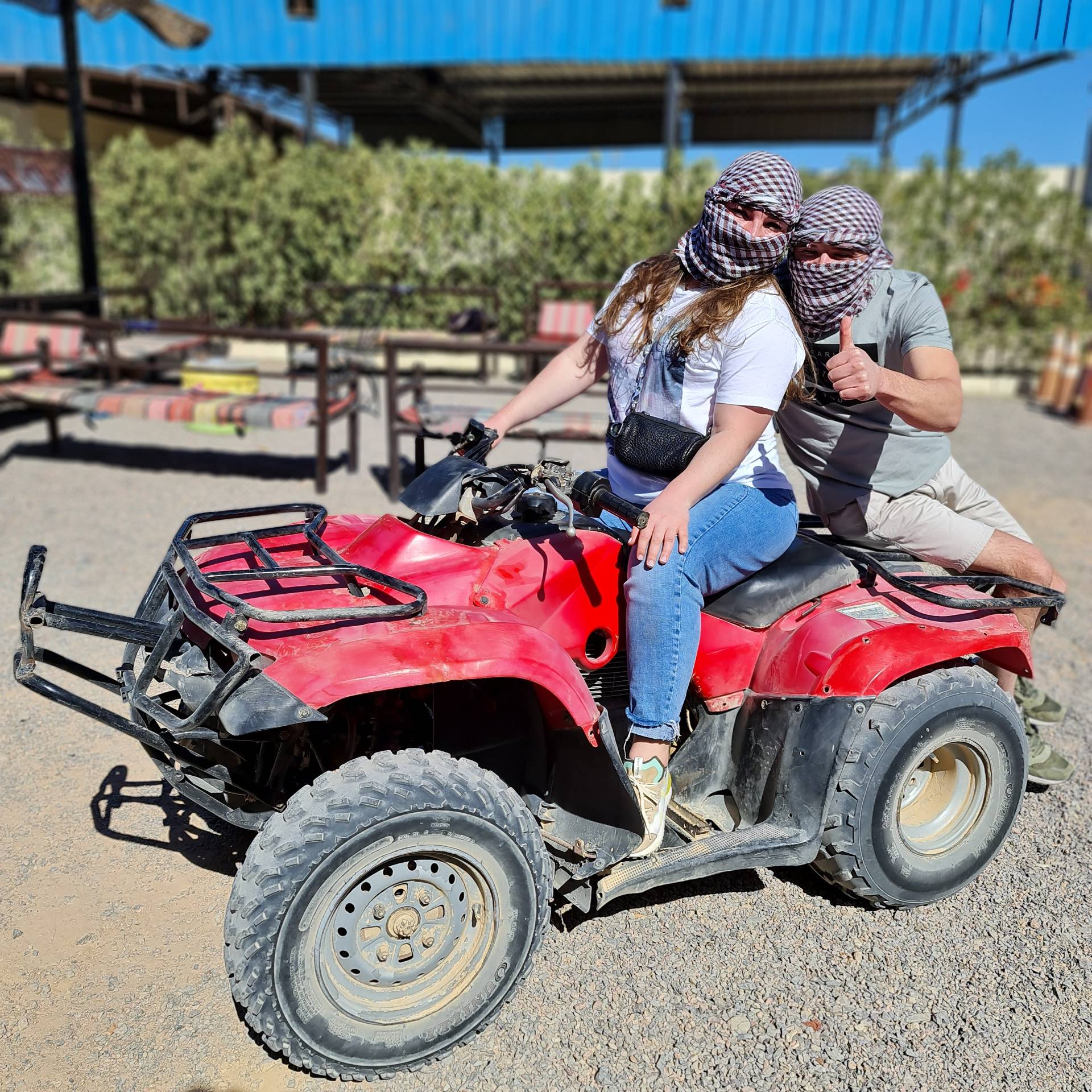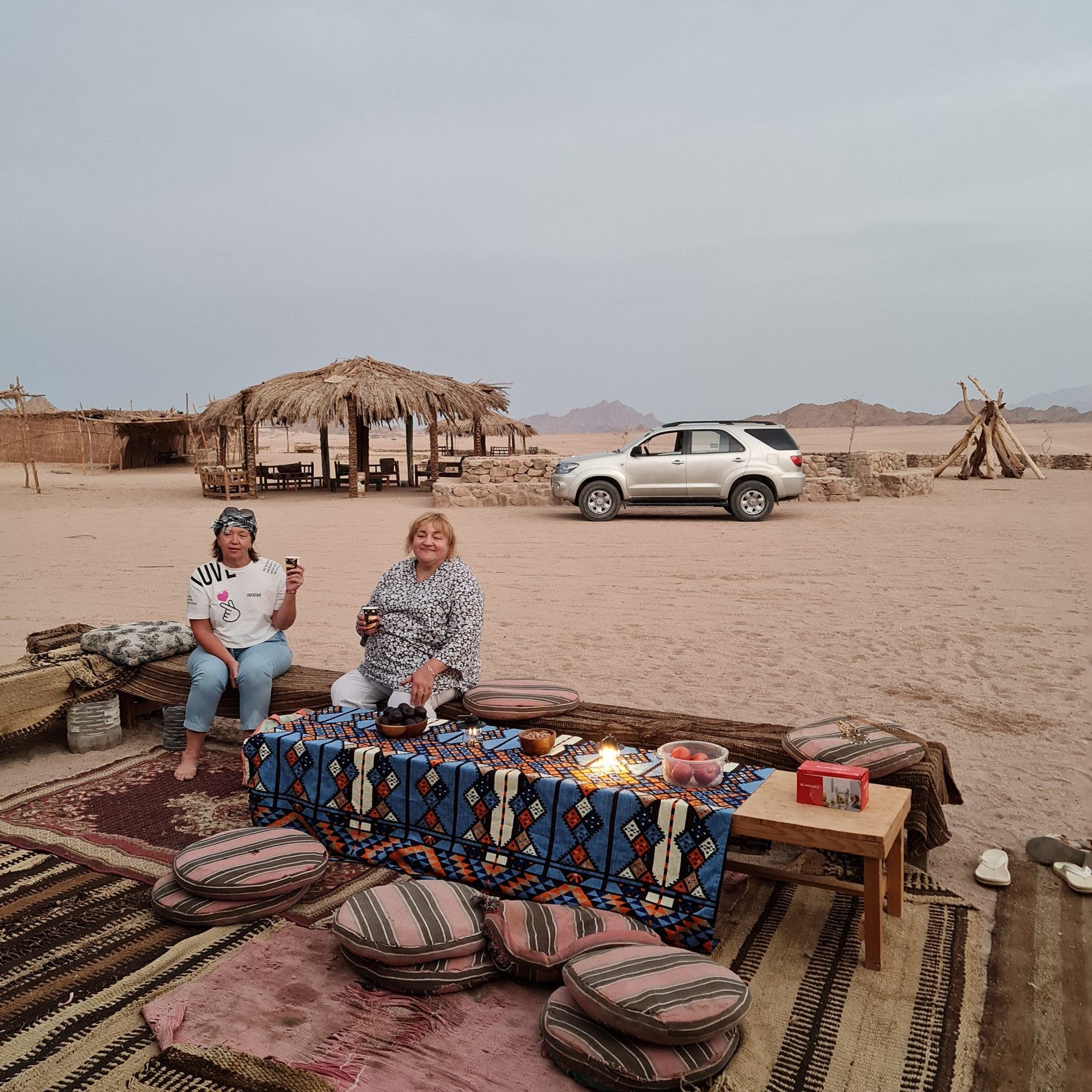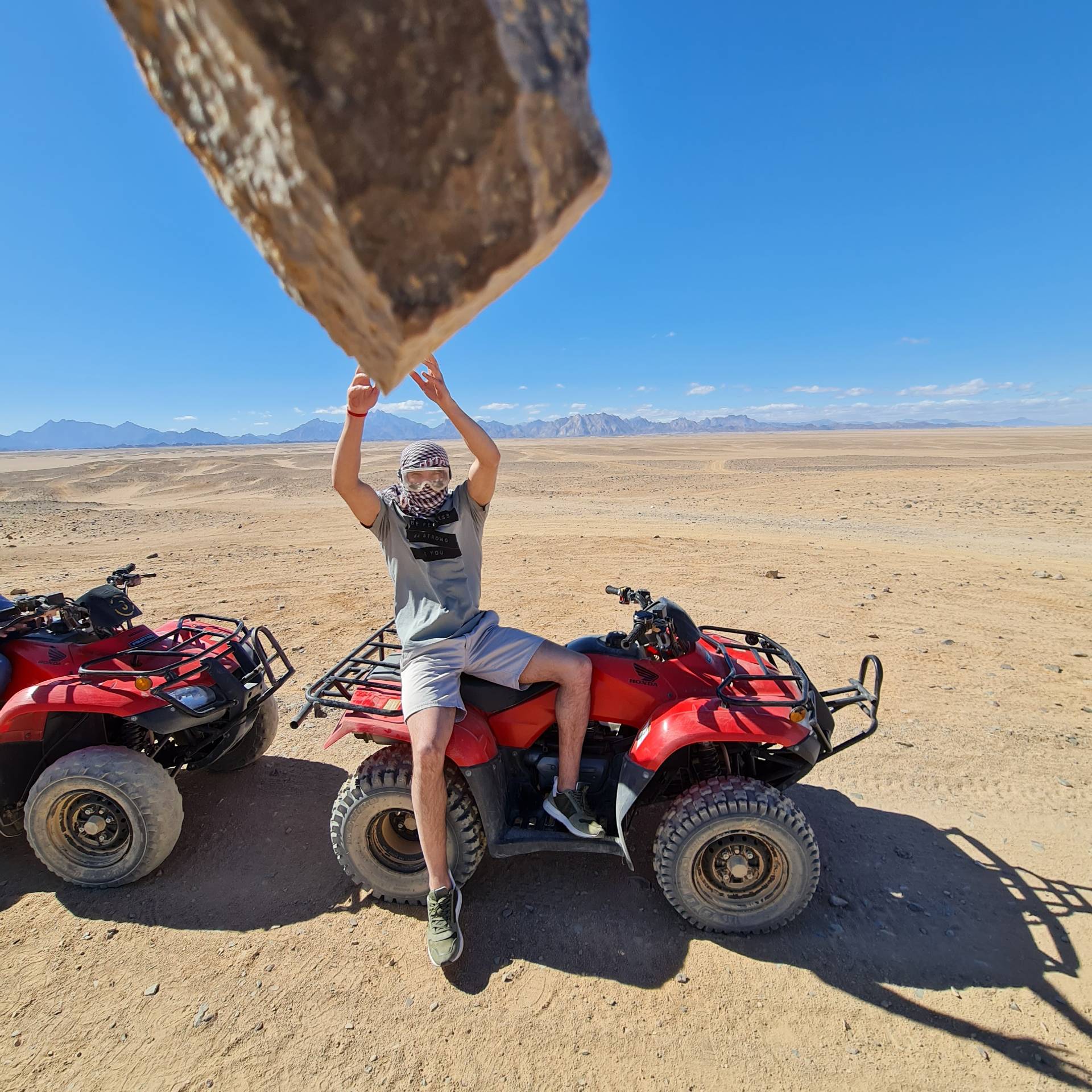 🔸45 минут - квадроциклы 🔸песчаная гора 🔸посещение бедуинской деревни и катание на верблюдах 🔸переезд в деревню Ом Дальфа на джипах 🔸мини-поход по горам (живые источники, каньон, дикая природа) 🔸бедуинский чай с лепешками 🔸встреча заката 🔸ужин с бедуинами 🔸возвращение в Хургаду