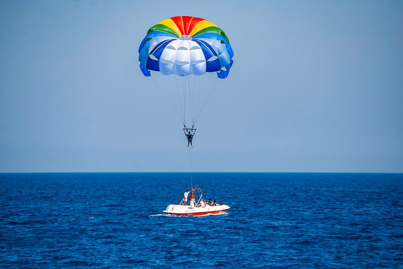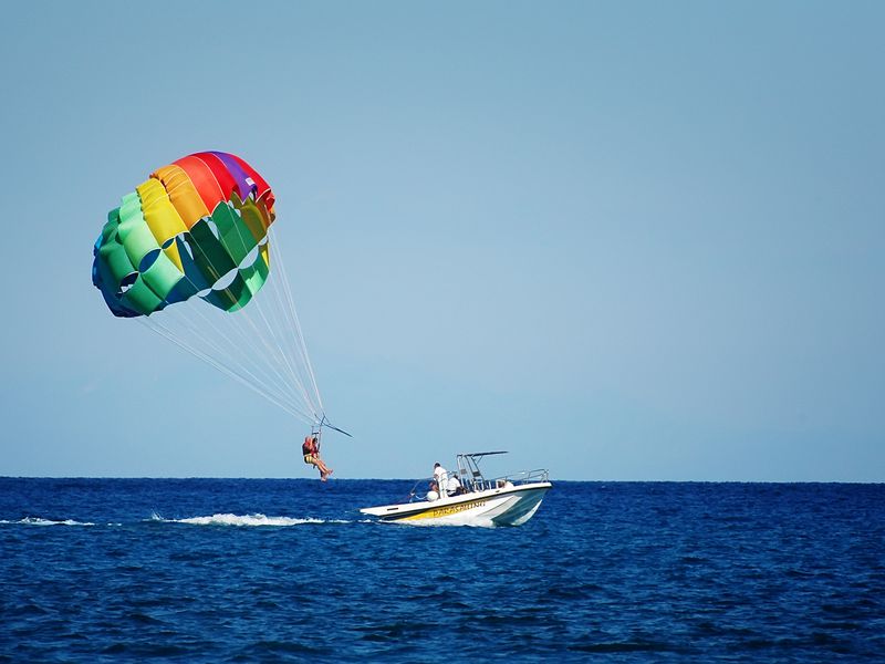 Парасейлинг с подъемом на высоту 40-50 метров (около 164 футов) в воздухе с полным временем полета 7-10 минут.
