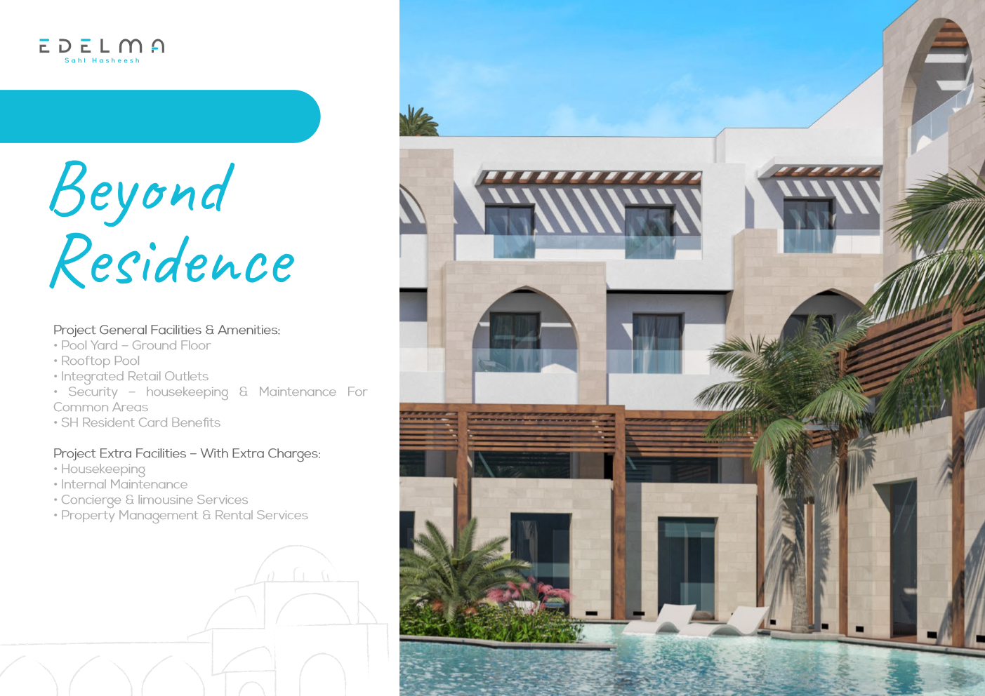 Кол-во жилых объектов - 85 Главный бассейн на 1 этаже Бассейн на крыше Охрана 24/7 Консьерж Лимузин сервис Карта резидента Сахль Хашиш Услуги по управлению недвижимостью и аренде Площадь недвижимости от 47 м2 до 200 м2 Стоимость от 700.000 L.E.
