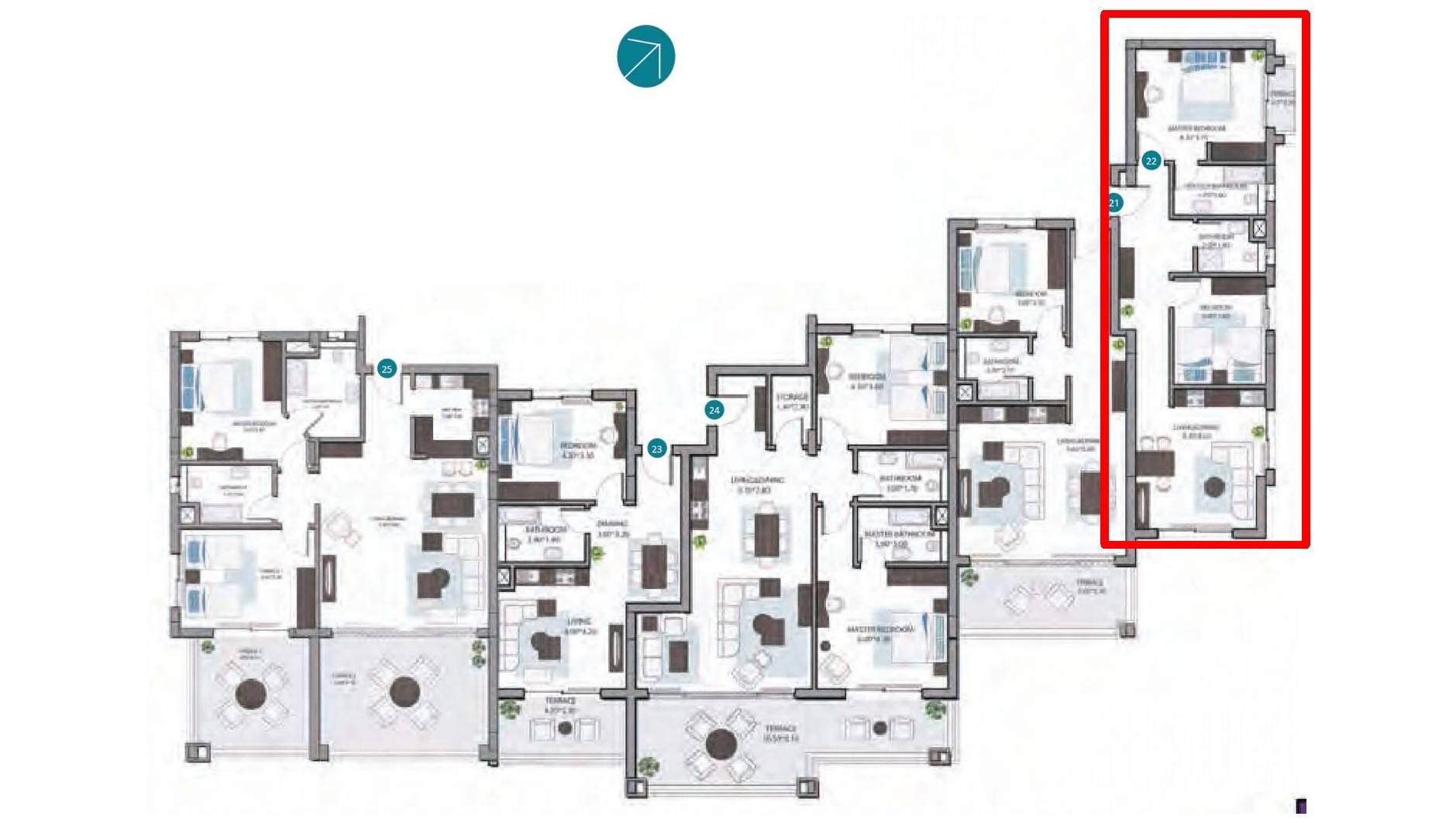2 этаж Общая площадь 132м2 Терраса 44м2 3 спальни 3 ванные комнаты кухня полностью мебелированные и готовые для комфортного проживания