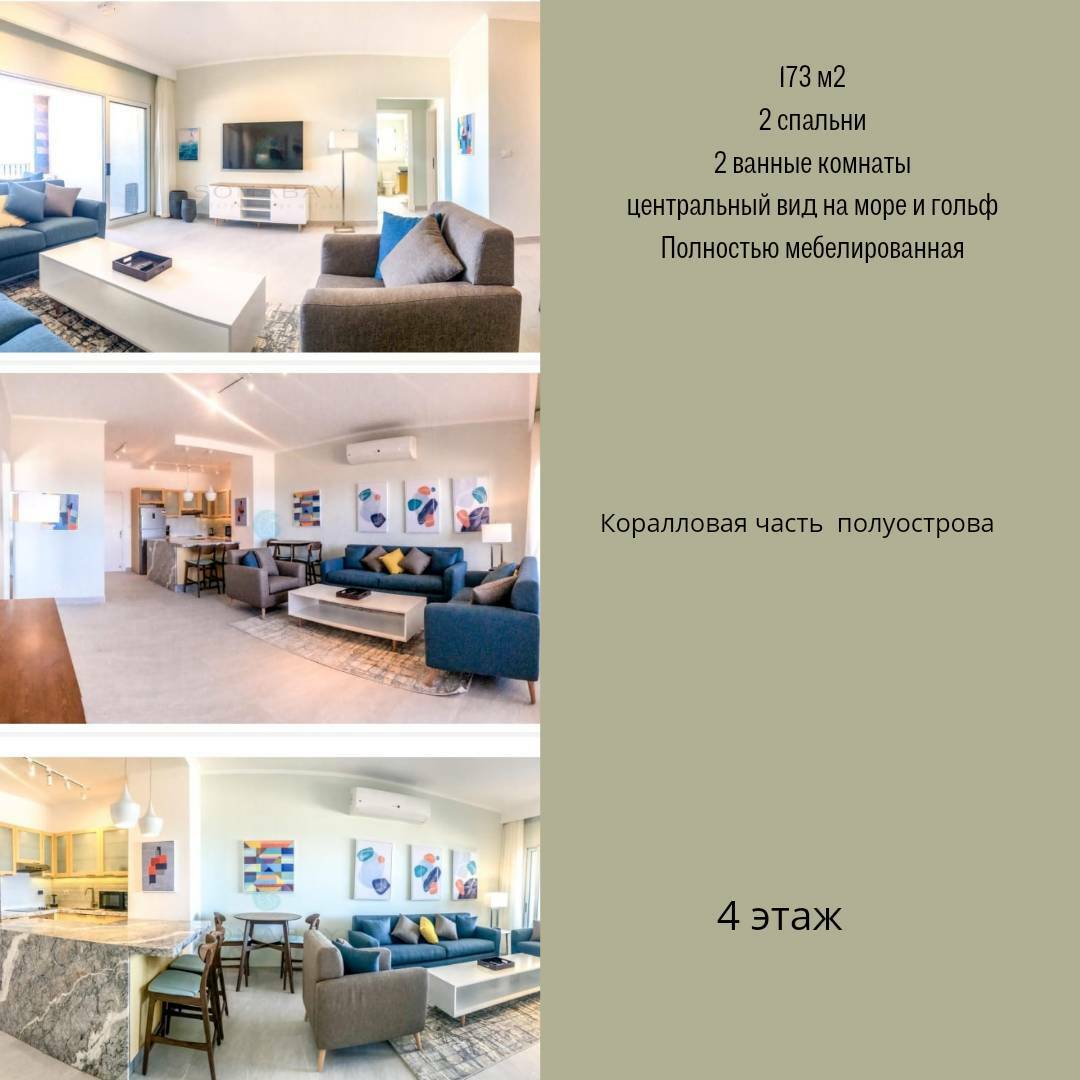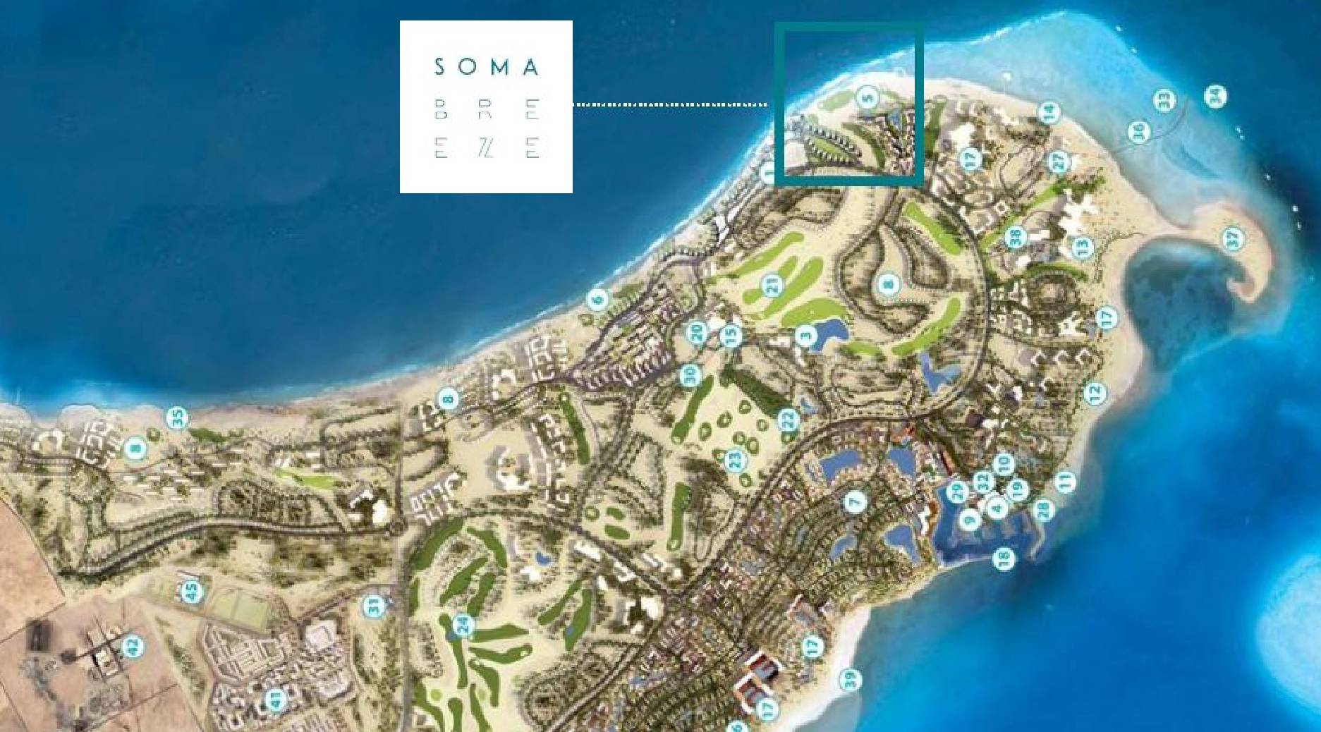 Квартира расположена в жилом комплексе проекта Soma Breeze (коралловая часть полуострова) с панорамным видом на открытое, синее море и гольф.