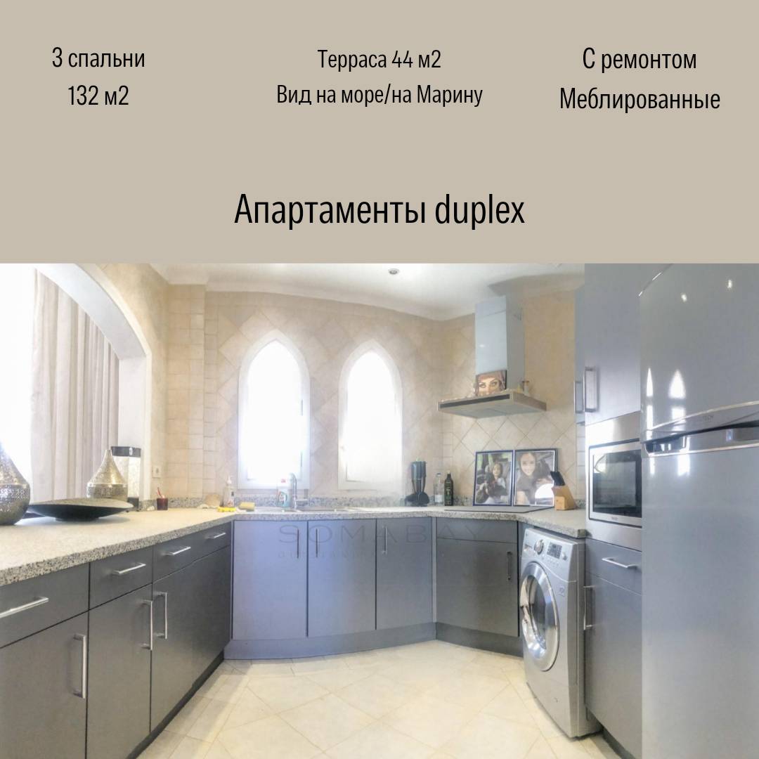 160 м2 2 спальни / 2 ванные комнаты Полностью меблированная Второй этаж Большая терраса Вид на море и гольф