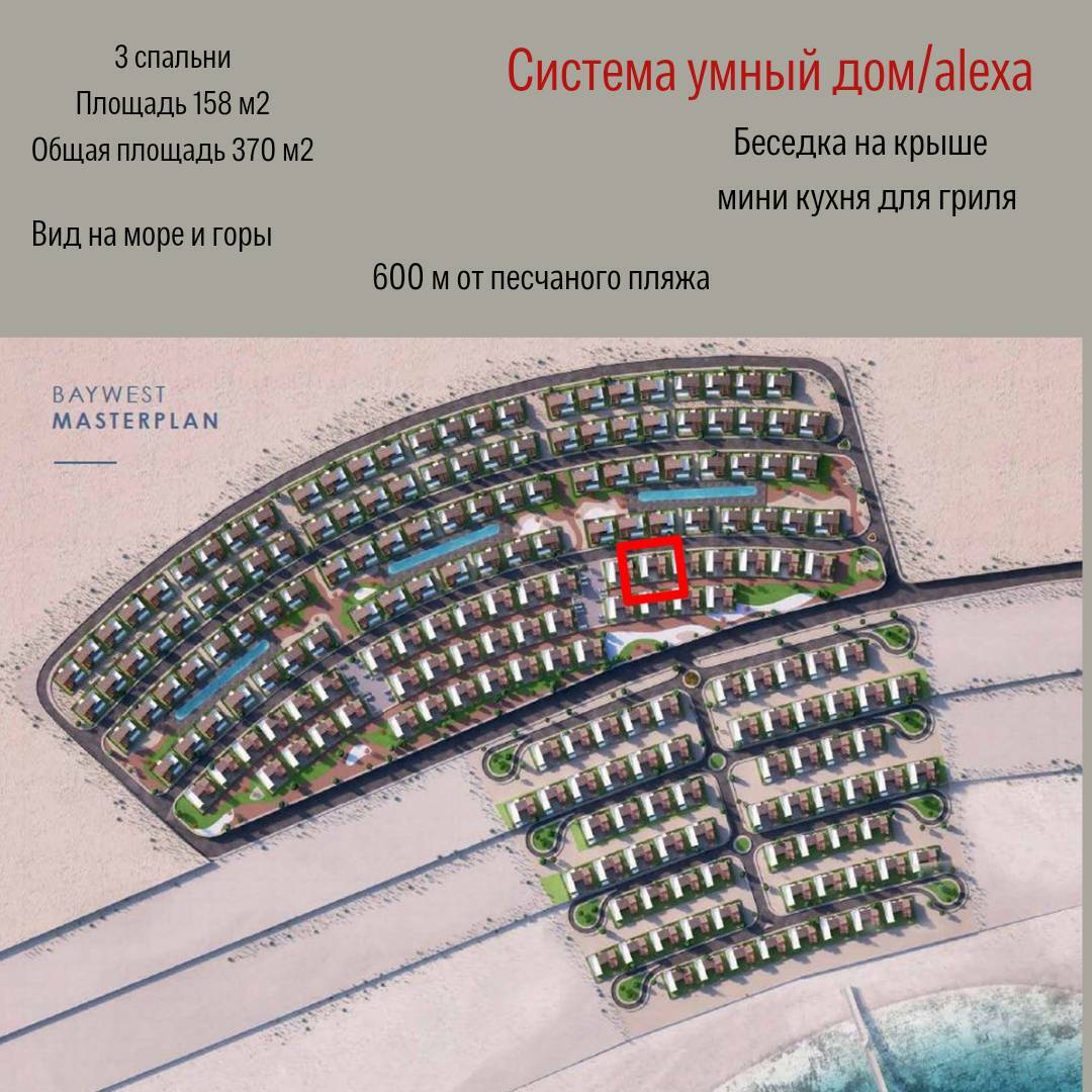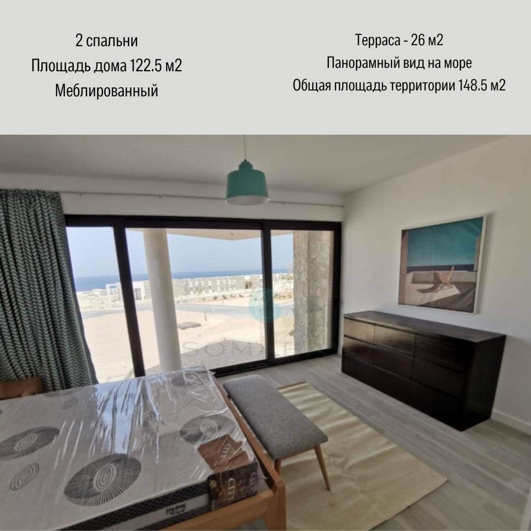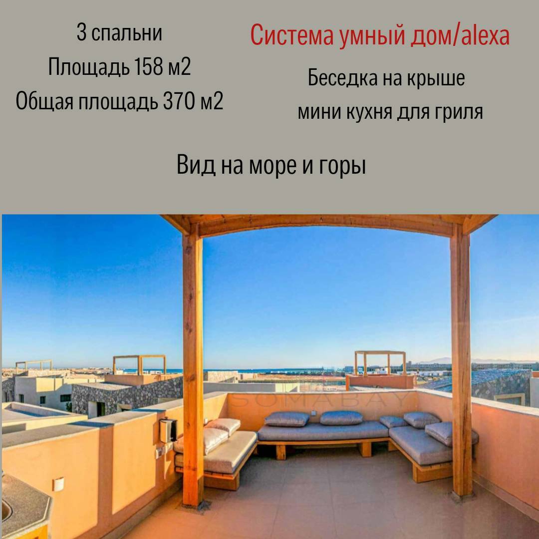 Общая площадь территории 148.5 м Площадь дома - 122.5 м2 2 спальни Терраса 26 м2 С ремонтом (испанский порсалин/плитка) 100% собственнсть Бассейн с подогревом на территории компаунда Круглосуточная охрана Годовой сервисный сбор - 160 египетских фунтов.
