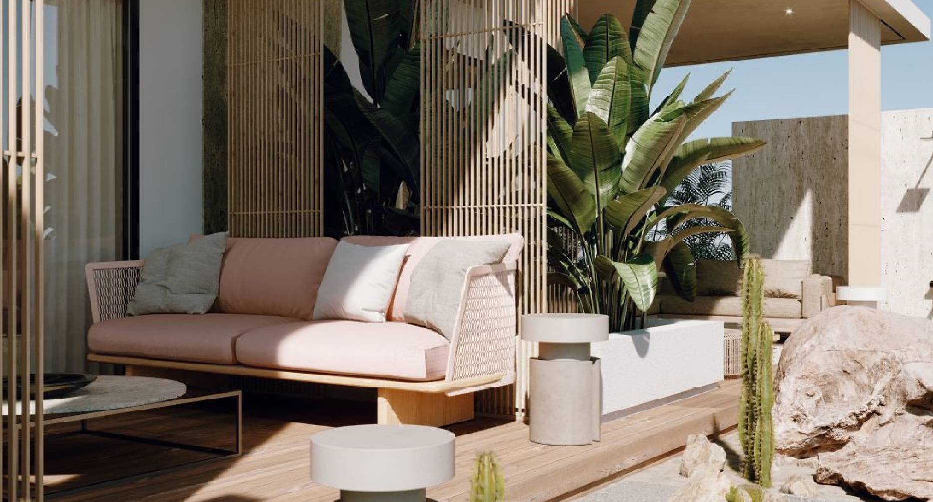 Однокомнатная квартира с большой террасой, c садом и потрсясающим видом на лагуну, гольф и море.